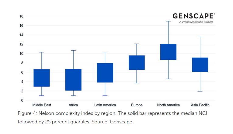 To explain the jargon, the Nelson Complexity Index is a measure of the sophistication of an oil refinery, where more complex refineries are able to produce more heavily refined, and valuable, products from a barrel of oil.