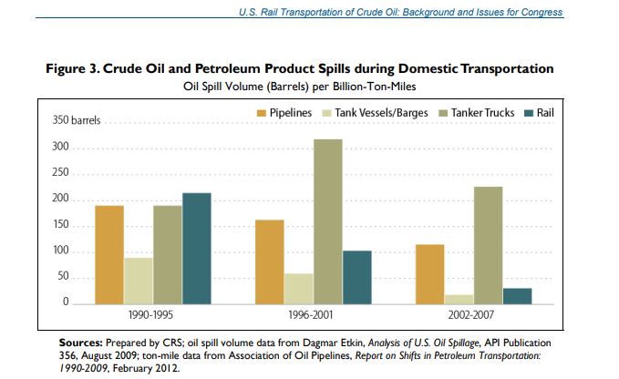 This statement ran contrary to everything I knew about this topic so I consulted the footnote. It cited a Congressional Research Service report from 2014 titled: U.S. Rail Transportation of Crude Oil: Background and Issues for Congress. The footnote indicates the statistic is from Figure 3 of this report (reproduced below):